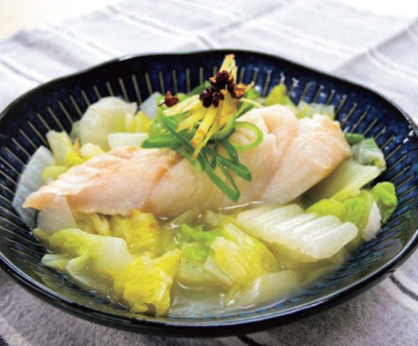 取り出しておいた花椒、ねぎ、しょうがをのせたらできあがり。