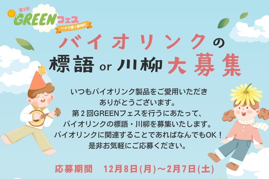 第2回GREENフェスを行うに当たって、バイオリンクの標語・川柳を募集いたします。