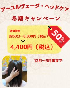 アーユルヴェーダ・ヘッドケア 冬期キャンペーンで半額♪