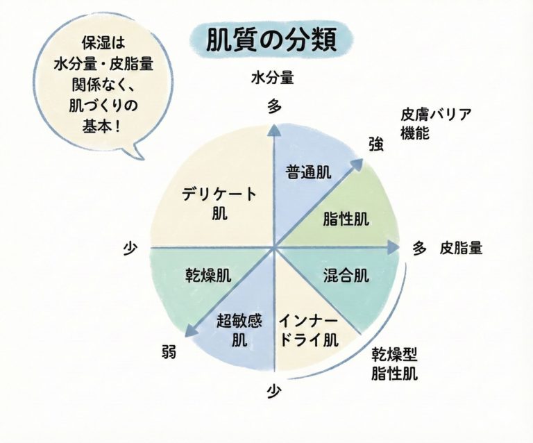 肌タイプは、「水分量」「皮脂量」「バリア機能」の3つのバランスによって